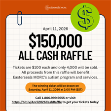 $150,000 all cash raffle benefiting Autism Services at Easterseals MORC.